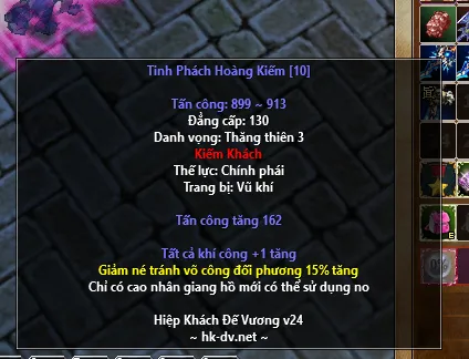 Trang bị đã cường hóa hoặc hợp thành rồi vẫn thực hiện được.