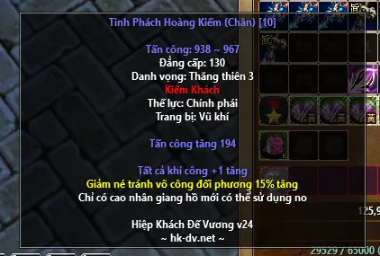 Các vật phẩm có thể sử dụng bao gồm: Vũ khí, y phục, tay, chân.