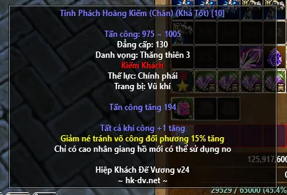Có các mức cơ bản như sau: Thường (mặc định), Khá Tốt (+5%), Cao Cấp (+8%).